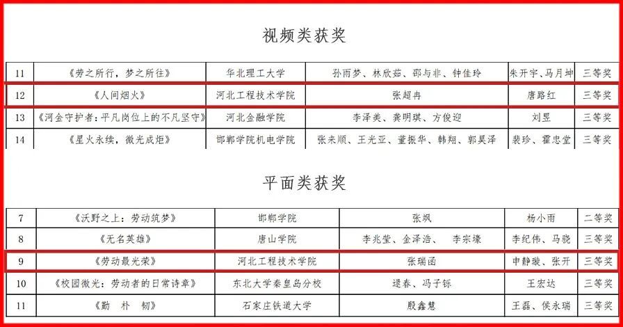 近日,河北省教育厅正式公布2025年河北省学生劳动技能竞赛及劳动教育优秀成果展示活动获奖名单,我校学子在视频类和平面类两个分组中均获三等奖。
