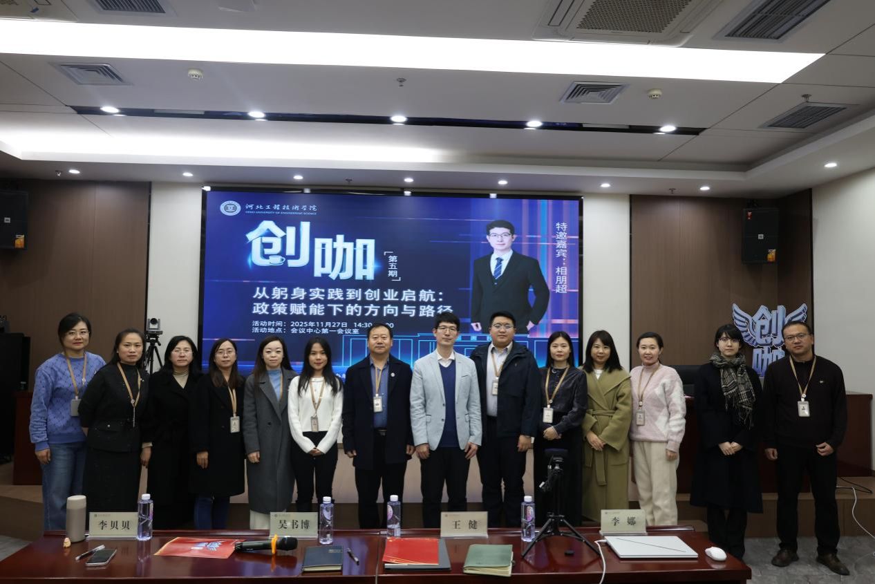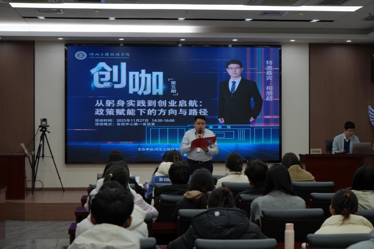 11月27日,河北工程技术学院「创咖」系列活动第五期在我校第一会议室举行。本次活动以“从躬身实践到创业启航:政策赋能下的方向与路径”为主题,特邀资深专家相朋超先生从政策、实战及企业构思的角度分享他的跨界创业经验。