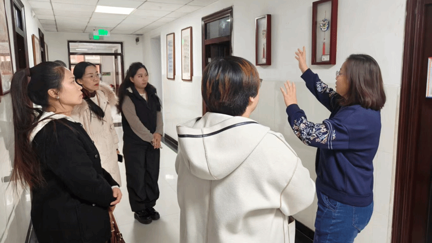 我院教师实地探访河北师范大学附属民族学院校园剪纸画廊、宿舍文化空间及艺苑工作室,两校教师围绕“传统文化传承与素质教育融合”“民族共同体意识浸润式培养”等内容展开深度交流,分享各自经验与探索成果,共同探索素质教育从“形式创新”到“内涵深耕”的实践路径。